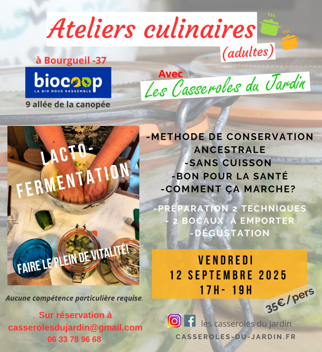 ADULTES: Programme ateliers culinaires Biocoop Bourgueil -37